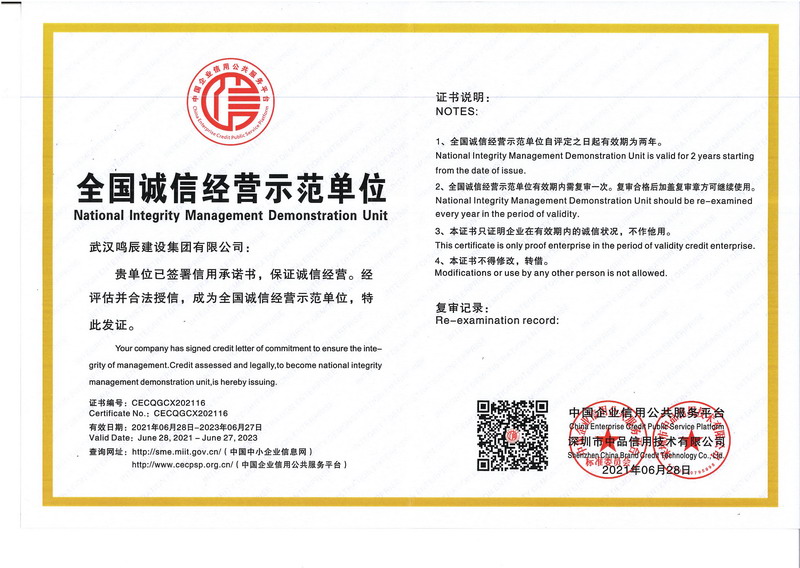 全國誠信經營示范單位
