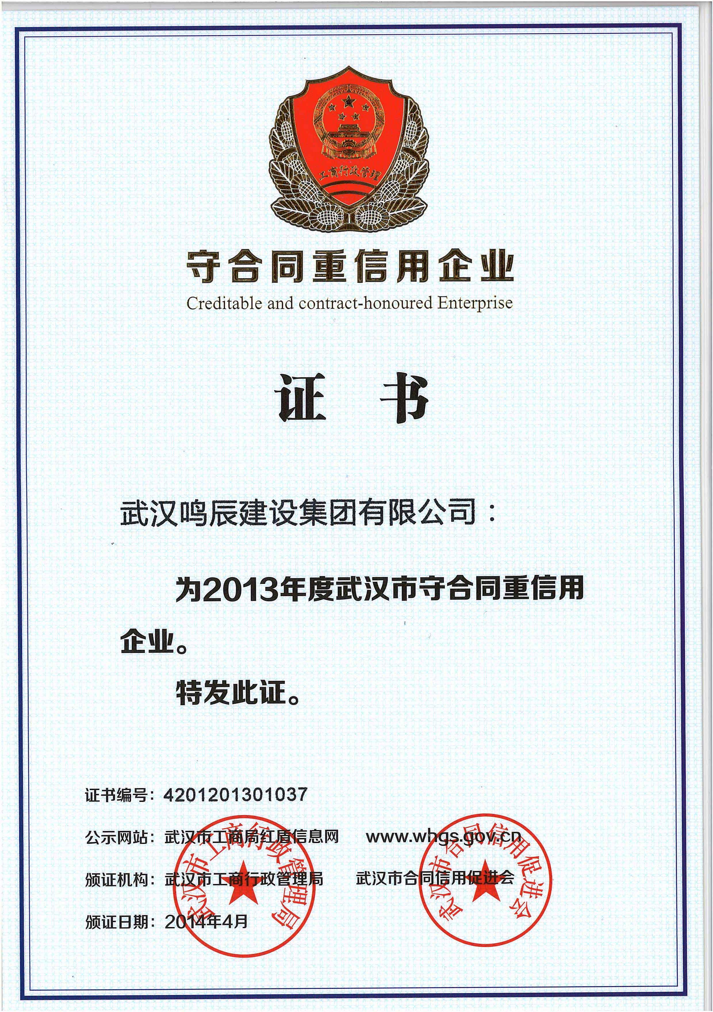 二〇一三年度武漢市守合同重信用企業(yè)