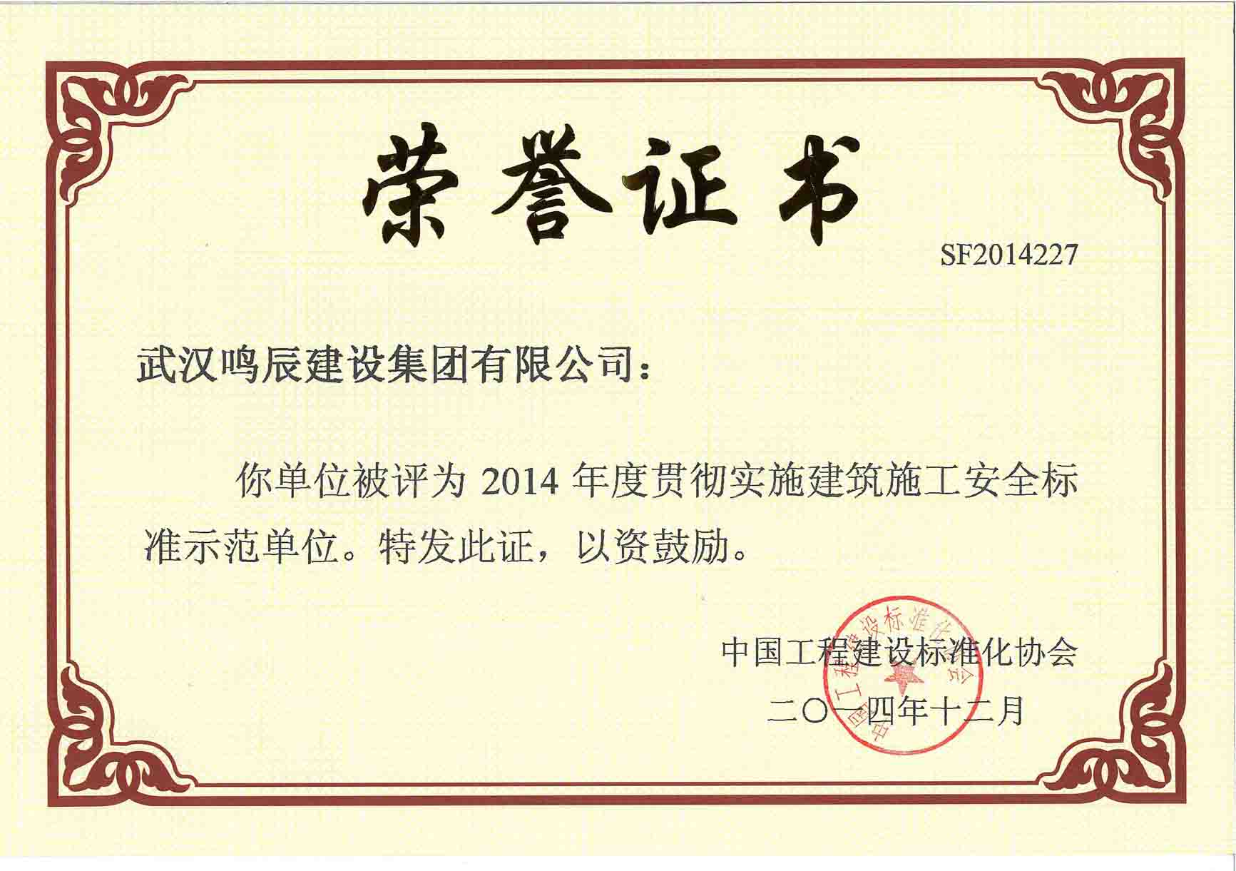 2014年度貫徹實(shí)施建筑施工安全標(biāo)準(zhǔn)示范單位