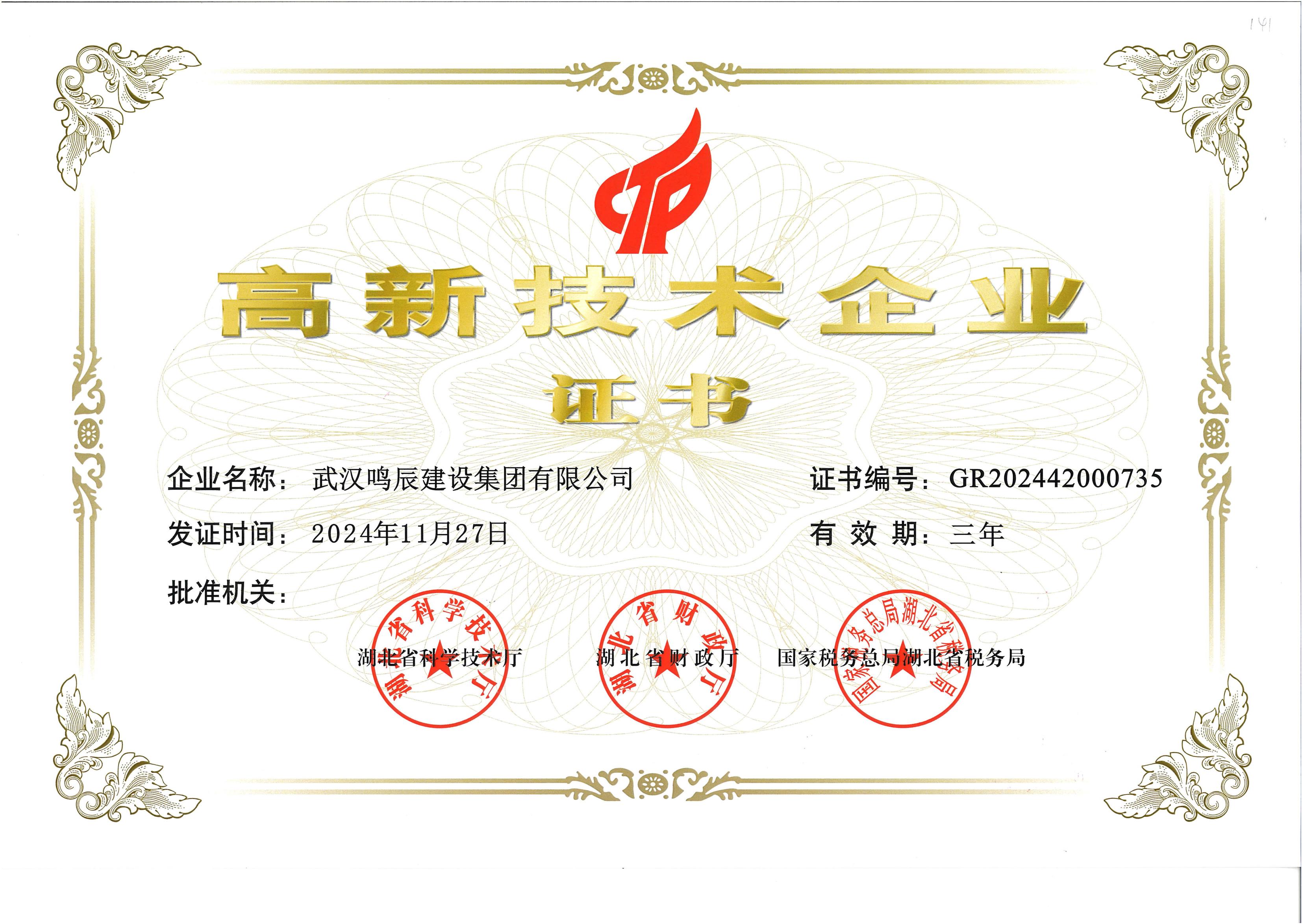 高新技術(shù)企業(yè)證書