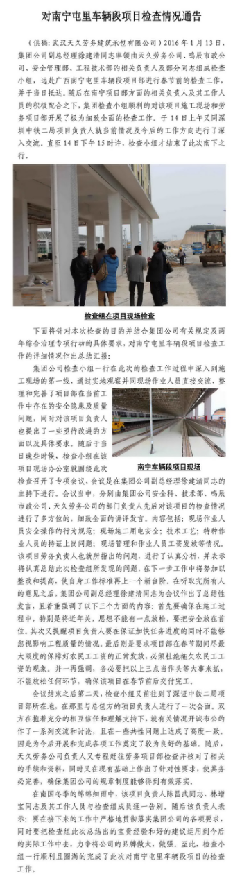 對南寧屯里車輛段項目檢查情況通告