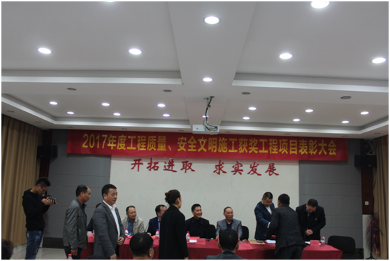 隨后,鳴辰集團(tuán)總經(jīng)理張惠忠宣布了《關(guān)于表彰2017年度獲獎(jiǎng)工程項(xiàng)目的決定》。決定對保利時(shí)代K18地塊A、B棟及地下室工程、高雄壹號(hào)工程、幸福灣二期、保利清能西海岸北區(qū)五期工程、祥運(yùn)鞋業(yè)生產(chǎn)車間工程等5個(gè)工程項(xiàng)目榮獲的工程質(zhì)量、安全文明施工方面的7個(gè)獎(jiǎng)項(xiàng)就行了獎(jiǎng)勵(lì)。市協(xié)會(huì)領(lǐng)導(dǎo)、中杰公司領(lǐng)導(dǎo)、勞動(dòng)街領(lǐng)導(dǎo)及鳴辰集團(tuán)公司領(lǐng)導(dǎo)為受表彰的項(xiàng)目進(jìn)行了頒獎(jiǎng)。