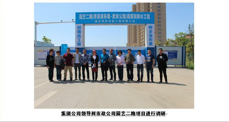 二、集團(tuán)公司董事長王春才、總經(jīng)理張惠忠?guī)ьI(lǐng)全體領(lǐng)導(dǎo)對(duì)鳴辰市政公司承建的園藝二路道路和排水工程項(xiàng)目進(jìn)行了調(diào)研。