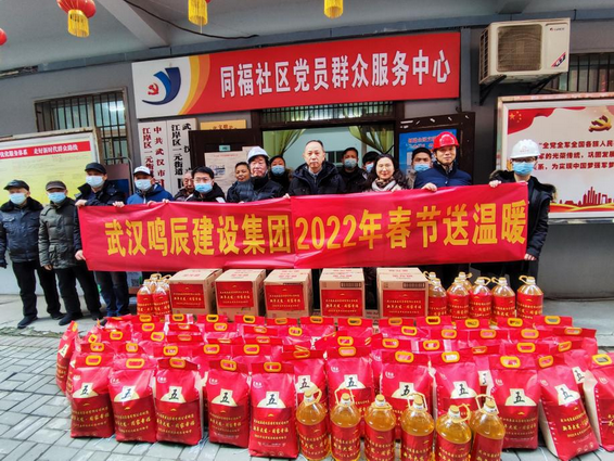 2022年1月17日,武漢鳴辰建設(shè)集團有限公司2022年春節(jié)送溫暖活動在江岸區(qū)同福社區(qū)舉行。集團公司副總經(jīng)理徐建清代表武漢鳴辰建設(shè)集團有限公司、湖北鳴辰市政工程有限公司為社區(qū)困難群眾送去慰問物資。一元街道領(lǐng)導(dǎo)吳主任及同福社區(qū)余書記及青島路項目部管理人員參加活動。