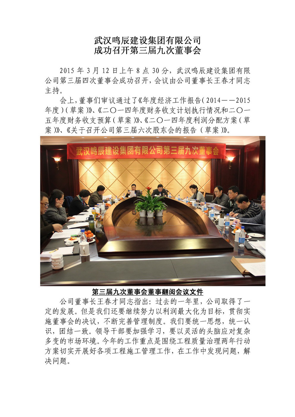 武漢鳴辰建設(shè)集團成功召開第三屆九次董事會
